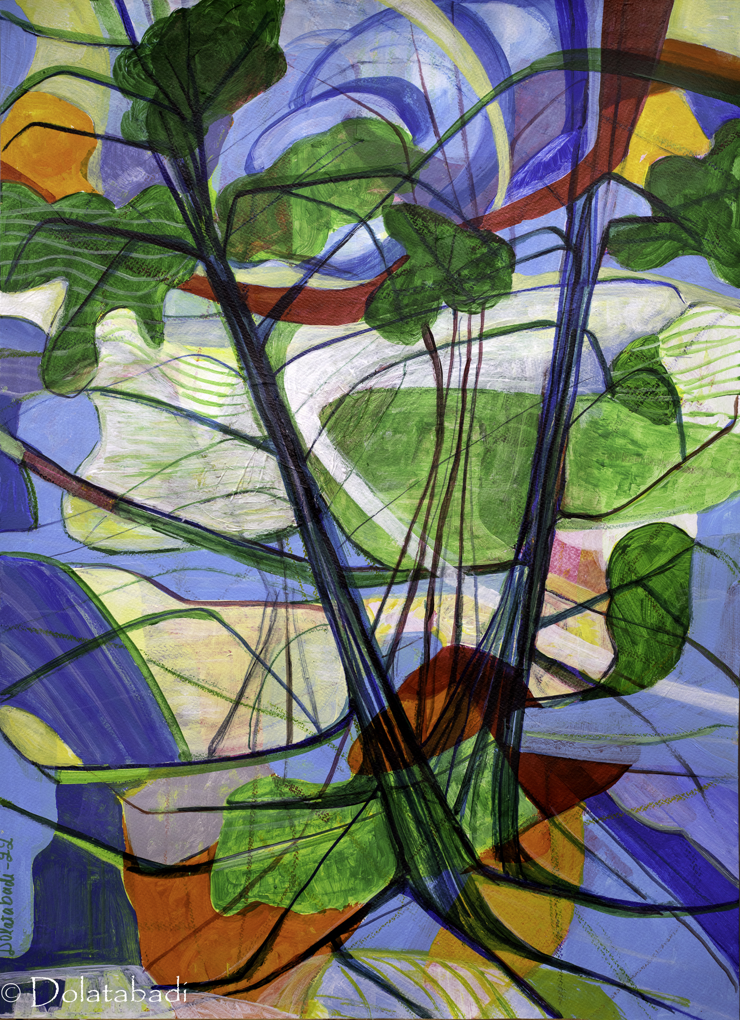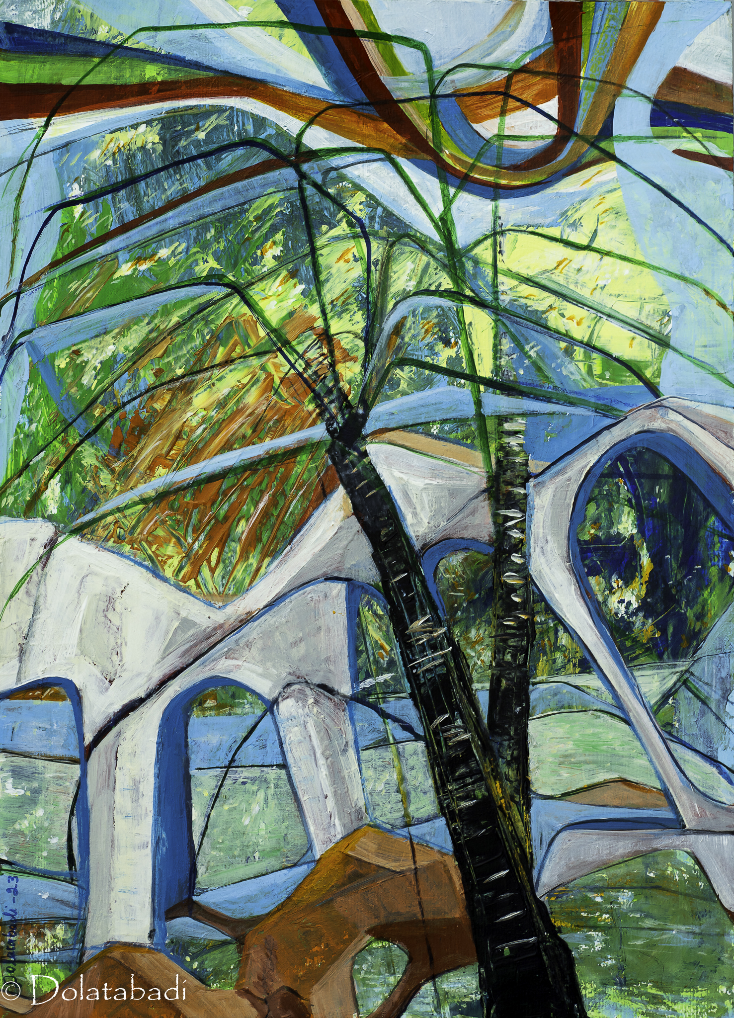 Each canvas is a map of inner motion — where architectural rhythms, botanical energy, and abstract forces intersect. I allow color to lead me emotionally, structure to ground me compositionally, and line to carry the thread of thought. Through this, I construct visual environments that feel both ancient and futuristic — ecosystems of memory, motion, and myth.